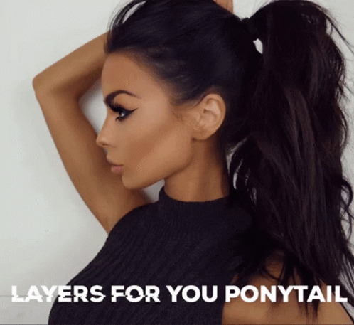 Woman showcasing a voluminous, layered high ponytail, featuring Indiquehair Hairlove style.