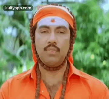 Sathyaraj in a funny saamiyar getup from Maha Nadigan movie, showing a comedic 'Inga Variya' expression.