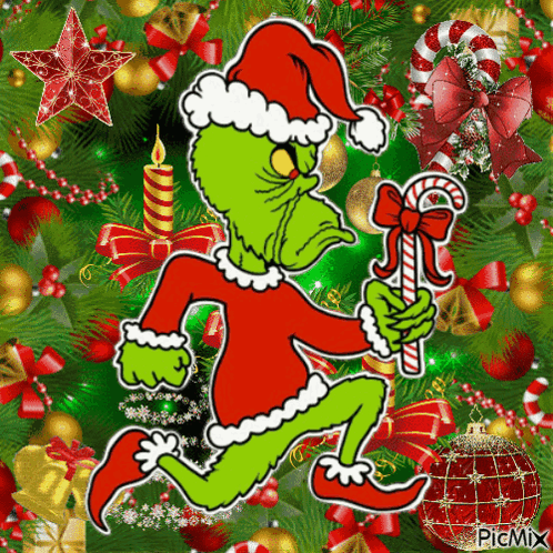 Insane Clown Posse Icp Grinch celebrates Christmas with a candy cane and festive decorations.