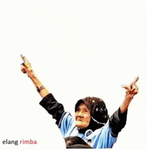 An older woman pointing upwards with text 'Insyaallah Menang Prabowo!' and 'Elang Rimba' for political support.
