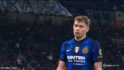 Nicolo Barella, the Inter Milan midfielder, on the field in his team's jersey.