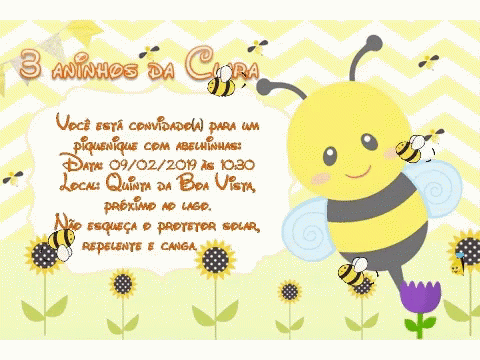 Clara's 3rd birthday picnic invitation with a cute bee theme, featuring date, time, and location details.