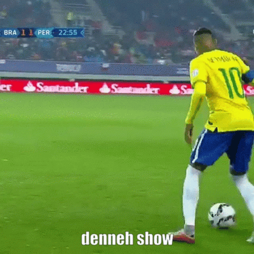 Brazilian player in yellow jersey, number 10, showcasing skills in a Brazil vs Peru match.