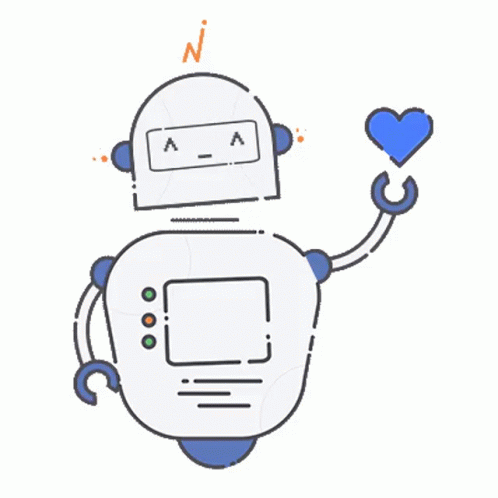 A friendly Iranserver blue robot holds a heart, symbolizing love and connection.