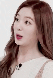 Irene Joohyun from Red Velvet laughing joyfully, showcasing her bright smile and red lips.