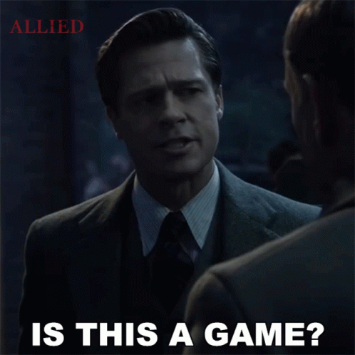 Max Vatan, played by Brad Pitt, intensely asks 'Is This A Game?' in a dramatic scene from Allied.