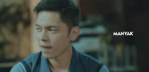 Carlo Aquino from "Isa Pa With Feelings" touches his neck, with the word "Manyak" displayed.