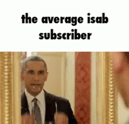 a man in a suit and tie is looking at himself in a mirror and says the average isab subscriber