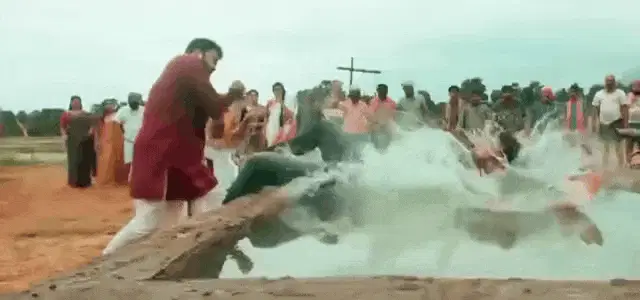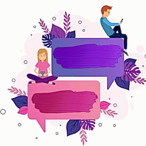 Animated scene with a man and woman on speech bubbles, revealing the message 'La Fe Nos Une' by Ishbaj.