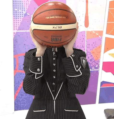 a person holding a basketball in front of their face that says fiba on it