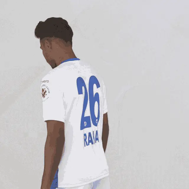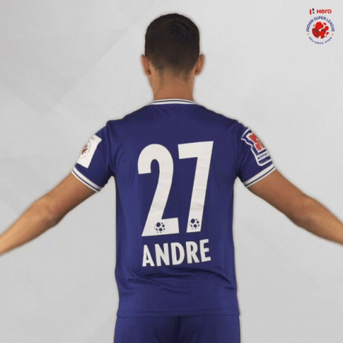 André Schembri, player for Chennaiyin FC, showing his number 27 jersey for Indian Super League.
