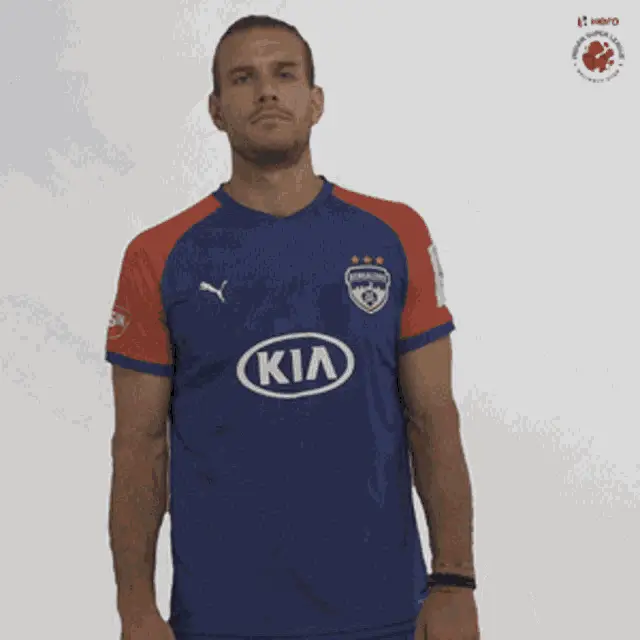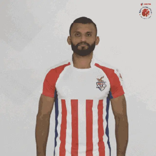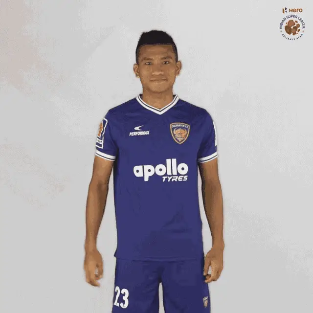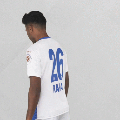 Rana Gharami, an Indian Super League soccer player, proudly displays his number 26 jersey and makes a shaka gesture.