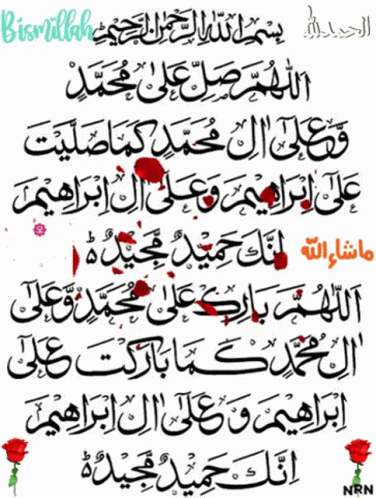 Beautiful Islamic calligraphy displaying the powerful Durood-e-Ibrahim prayer, with animated Bismillah and Mashallah text.
