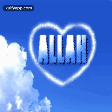 The word ALLAH appears in the sky amidst clouds, an Islamic animation.