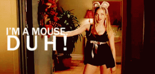 Amanda Seyfried as Karen Smith from Mean Girls, dressed as a mouse, famously declares 'I'm a mouse. Duh!'