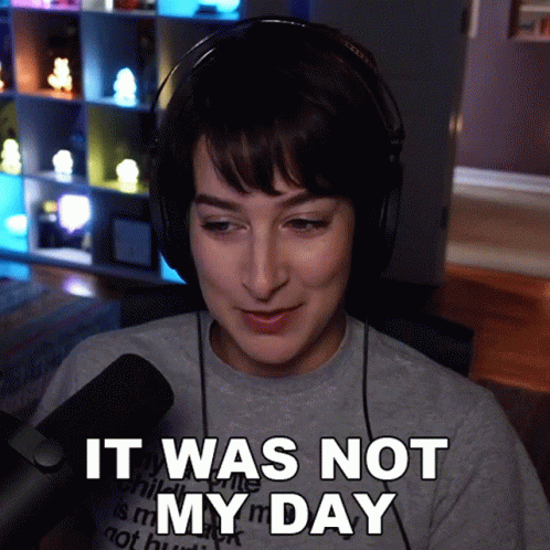 Feralwife, wearing headphones, expresses her frustration, saying 'It was not my day' into a microphone.