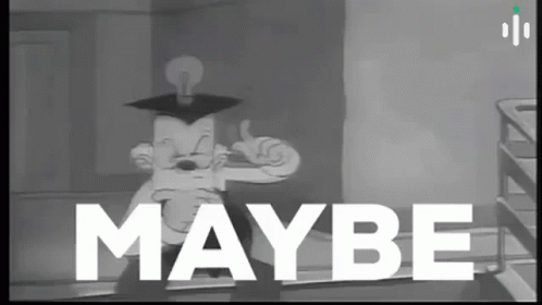 A black and white cartoon character with a light bulb hat reacts to 'Maybe', 'No', 'Yes', 'Nah', reflecting choppy trading decisions.