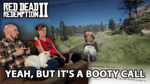 Fraser and Becky from Far From Subtle react to Red Dead Redemption 2 gameplay with a cat on their lap.