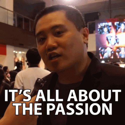 A man passionately declares, 'It's all about the passion,' emphasizing the importance of desire and eagerness.
