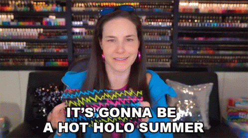 Cristine Raquel Rotenberg shows off a 'Hot Holo Summer' product, celebrating the season with holo fun.