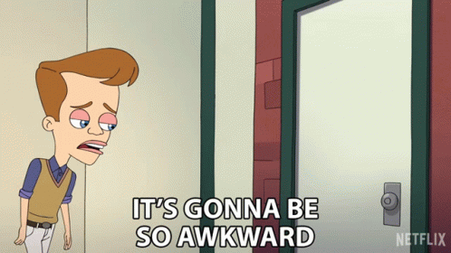 Matthew Mac Dell from Big Mouth looks embarrassed and uncomfortable, stating 'It's Gonna Be So Awkward'.