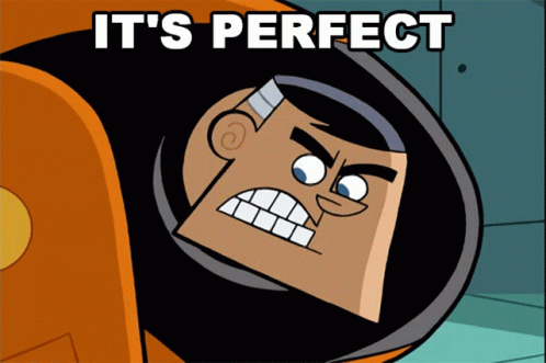 Jack Fenton from Danny Phantom reacts with 'It's Perfect' in a cartoon scene, showing an impressed grin.