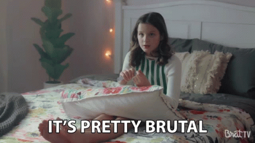 Hayley Leblanc sits on her bed, reacting to something 'pretty brutal' in a scene from Brat TV.