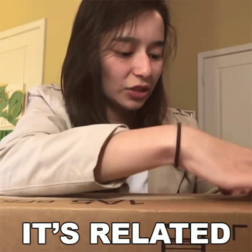 A woman opens a cardboard box with "IT'S RELATED" printed on it, referencing the Laughingpikachu meme.