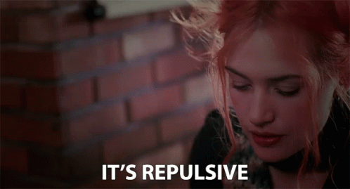 Kate Winslet as Clementine Kruczynski expresses disgust, saying 'It's repulsive' in Eternal Sunshine of the Spotless Mind.