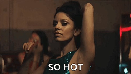 A woman in a green dress holds a red object, exclaiming 'SO HOT', referencing Luke Bryan's vibe.