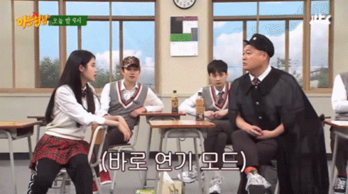 IU and Kang Ho-dong in a funny moment from a Korean variety show, with Ho-dong being told 'Don't be annoying!'