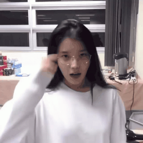 IU (Lee Ji-eun) transforms from a casual look with glasses and a white sweater to a stunning green dress and sparkling hair accessories.