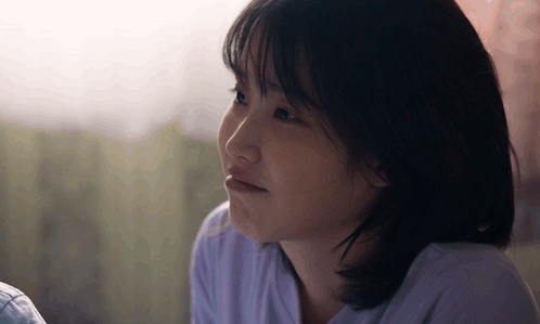 IU, portraying Aesun in 'When Life Gives You Tangerines', shares a cute, tender moment while wearing a purple shirt.