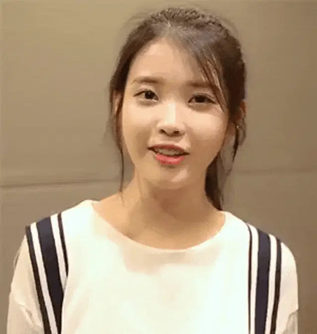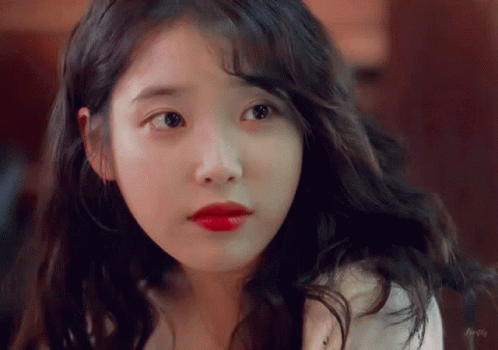 IU, known for her role in Persona, showcases a striking red lipstick look in this captivating close-up shot.
