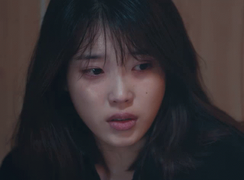 IU as Lee Jian, looking sad and distressed, with tears in her eyes, from the drama 'My Mister'.