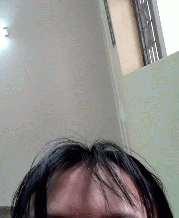 Close-up shot of a person's head with dark hair, framed against a window in the background, showing only the top of the head.