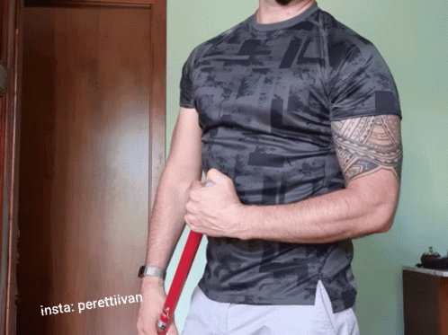 Ivan Peretti poses with a broom, showcasing his fitness during a home cleaning workout.