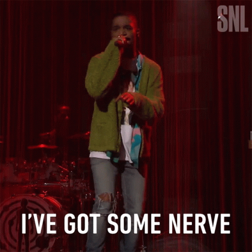 Kid Cudi performing "I've Got Some Nerve" live on Saturday Night Live, singing into a microphone.