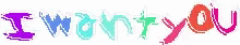 Animated text 'I want you' displayed in vibrant rainbow colors with a subtle shimmering effect.