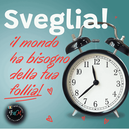 An alarm clock with the Italian message 'Wake up! The world needs your madness!' from Iwm Sabrina.