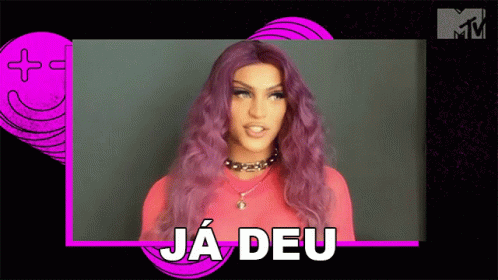 Pabllo Vittar with purple hair says "Já Deu" (It's Enough) in front of an MTV logo.