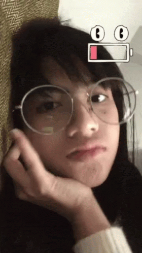 Jaabnk48 from BNK48 shows a tired expression with a low battery filter on her face.