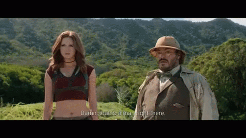 Jack Black's character in Jumanji reacts to seeing a man, exclaiming 'Damn, that is a man right there.'