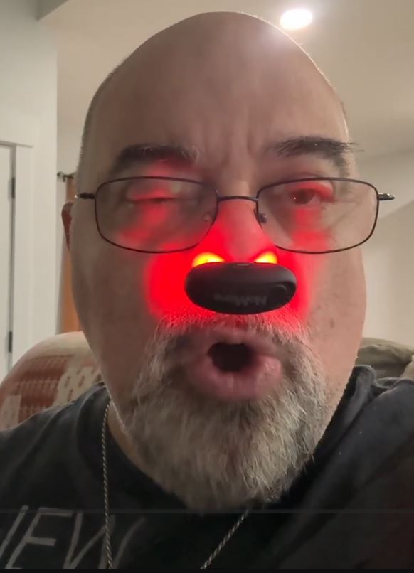 a man wearing a red hat and a shirt that says ride america is eating food