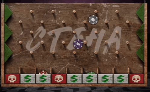 A thrilling moment from Jackbox's Trivia Murder Party, featuring the 'СТЕНА' (Wall) Plinko game with chips falling.