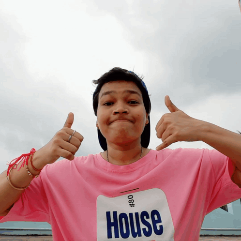 Jagyasini Singh gives two thumbs up and a 'call me' gesture, smiling brightly.