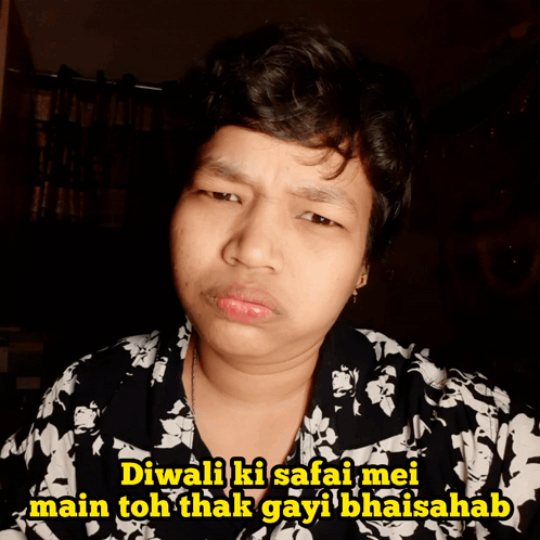 Jagyasini Singh expresses exhaustion from Diwali cleaning in a relatable meme, saying 'I am tired from Diwali cleaning, brother/sir'.