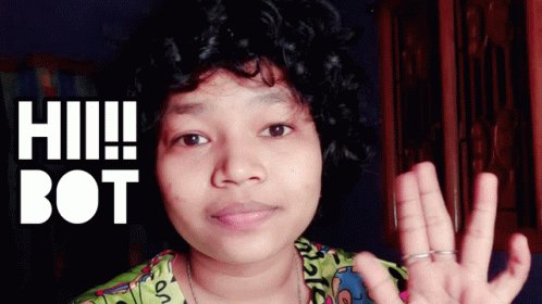 Jagyasini Singh greets the bot with a cheerful 'Hii!!! Bot' while wearing a vibrant green and yellow shirt.