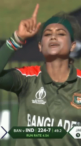 Jahanara Alam, Bangladesh women's cricketer, makes an iconic 'shush' gesture during a match.