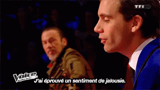 Mika expresses a feeling of jealousy on a French TV show, likely 'The Voice'.